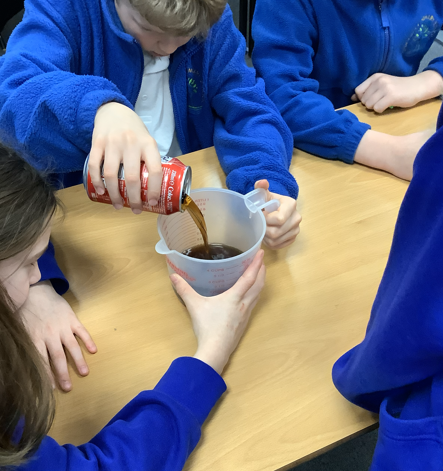 We placed the eggs in 250ml of water, orange squash, orange juice, vinegar, coffee and coke.