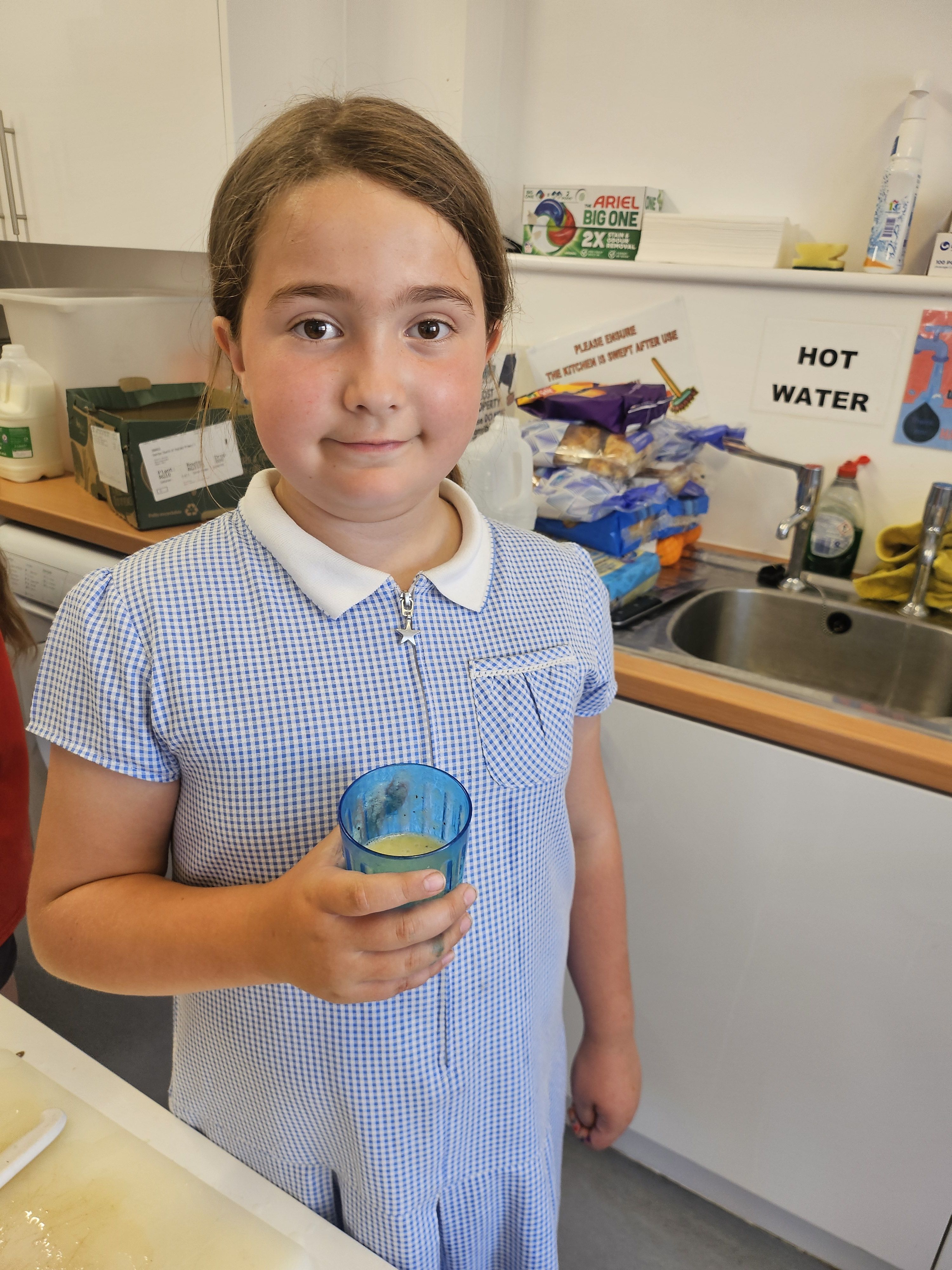 In DT we were thinking about healthy eating. We looked at smoothies and discovered they are a great way to get our 5-a-day!