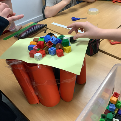 We also celebrated Number Day by challenging ourselves to build structures out of paper which held the greatest amount of multilink! Look how well we did!