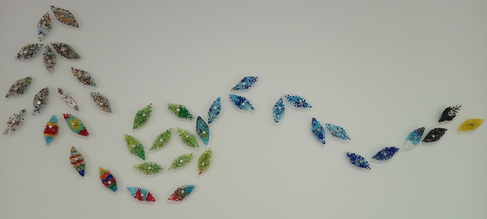 The school's mezzanine has been given a much-needed splash of colour this week after Jane Connell installed the glasswork from our annual Arts Week. Jane Connell, of the company The Glass Duck, worked with every child in the school and they all made a fused glass leaf. The installation takes up 4 walls and looks stunning. Well done to all the children for their creative designs and to Jane for her skill and support.