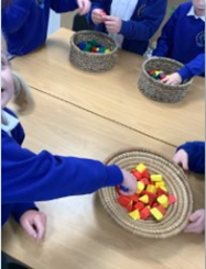 This term, the children have been learning how to count in 2s, 5s and 10s. They have learnt to recognise patterns when counting. For example, when counting in 10s, each number must end with a 0. They also began learning about multiplication and division, using arrays. We did some practical activities where the children had to divide into groups and decide whether the groups were equal or unequal. The children have also learnt how to recognise and find halves and quarters of shapes and quantities.