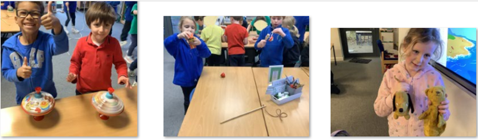 As part of our History unit, 'Toys from the past', the children happily interviewed their parents and grandparents about the toys they grew up with. The children brought in some of their favourite toys as well as a few from their older relatives. These were presented as 'show and tell'. The children made Science links about 'everyday materials'. While learning about toys from around the world, links were made to the handmade toys at Kibubula (our partner school in Uganda). Reflecting on this, the children learnt to weave and sew and made their own toy puppets in Art.