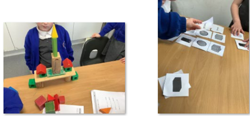 As Mathematicians, the children learnt about 3D and 2D shapes. They learnt about the properties and how to recognise 2D shapes on the faces of 3D shapes. They used 3D-shaped blocks to be creative at building things (example, a castle for Rupunzel – linked to our learning of traditional Fairytales). This activity allowed the children to explore other properties, such as curved surfaces and their ability to stack. We enjoyed our scavenger hunt for everyday objects with 3D shapes, as well as playing the matching card game: name of shape, shape and everyday object.