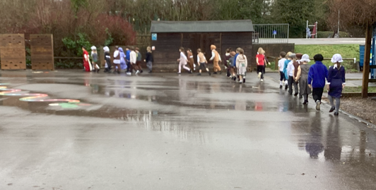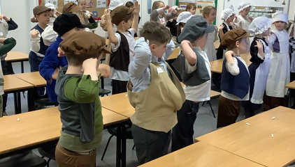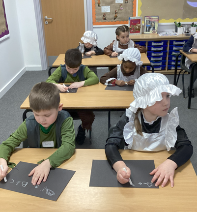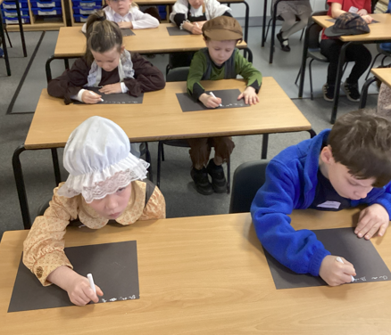 After this, everyone came to school ready for their Victorian classroom experience. The classrooms were set up in rows and children used chalk and chalk boards for their learning. The children found the new class rules a challenge, especially those who write left-handed. They found it particularly confusing that they were not allowed to ask questions or share their opinions. For those who broke the rules, they were invited to wear the dunce’s hat (those who wanted to). At the end of the day, they were very relieved to be back in 2026!