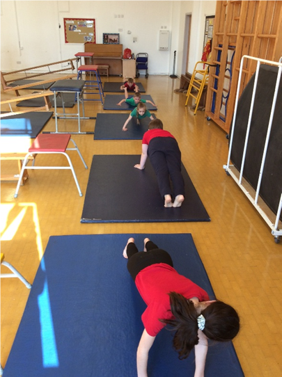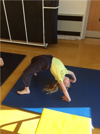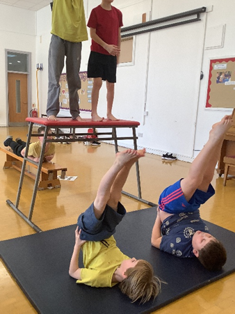 In gymnastics, we have worked in groups to perform a routine involving equipment and key gymnastic balances previously learned. Some of us have had to overcome our fear of heights to jump off the higher boxes.