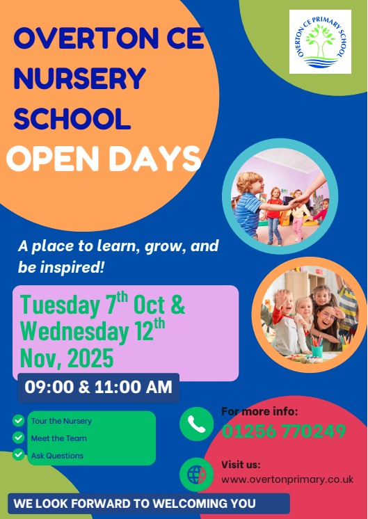 Spaces are available for children from the September of the academic year in which they will turn four years old. Children can attend on a term-time only basis or for 50 weeks of the year, excluding bank holidays. We offer spaces for both 15 and 30 hours of funded childcare and also accept childcare vouchers. This entitlement will be offered to parents on a flexible basis. If you would like any further information about the nursery, please contact the main school office at adminoffice@overton.hants.sch.uk